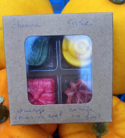 Ce coffret contient quatre odeurs au hasard sous forme de fondants parfumés.